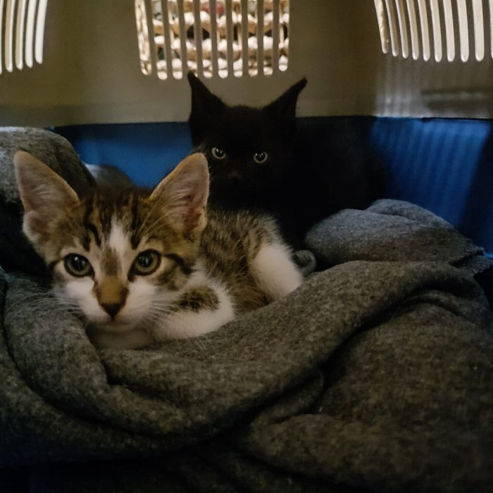 Golfo acaba de ser rescatado junto a su hermano Golfo. Aún están asustados e intentar escapar, pero con un poco de paciencia y cariño, se darán y cogerán confianza.